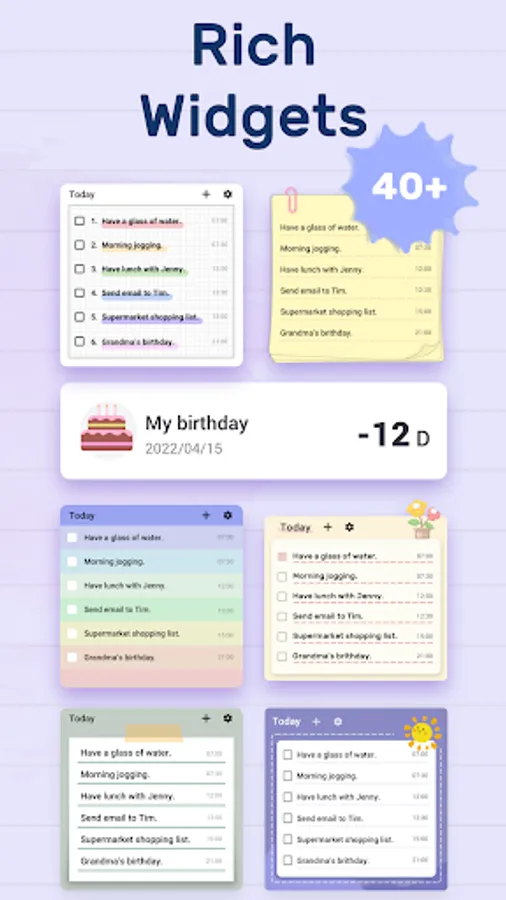 Set up daily to do list widgets to let you quickly check today's to.do.list and schedule planner.