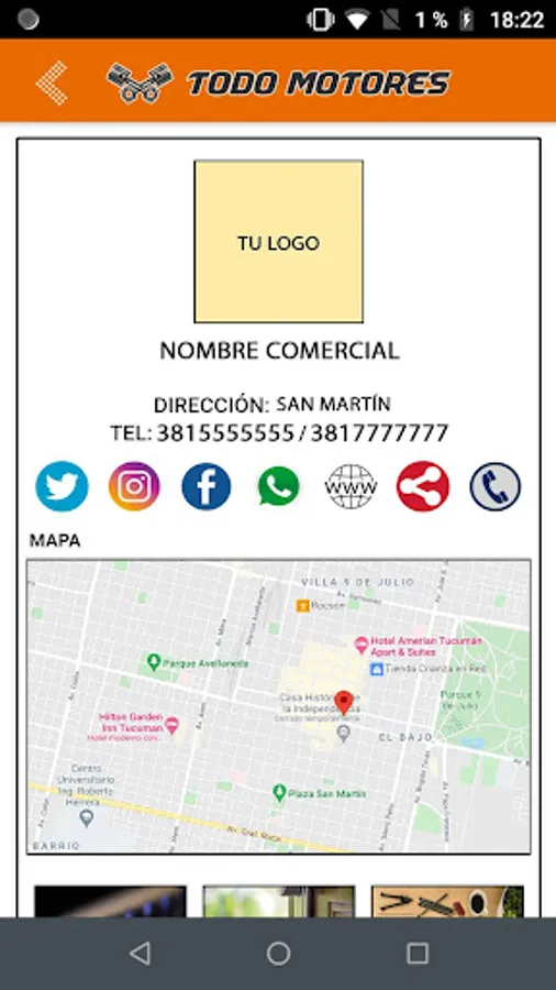 It locates the merchant by department / locality, according to their location and category, allowing the client to view their address, location on a map, interaction with websites, telephones, direct calls and descriptive images.