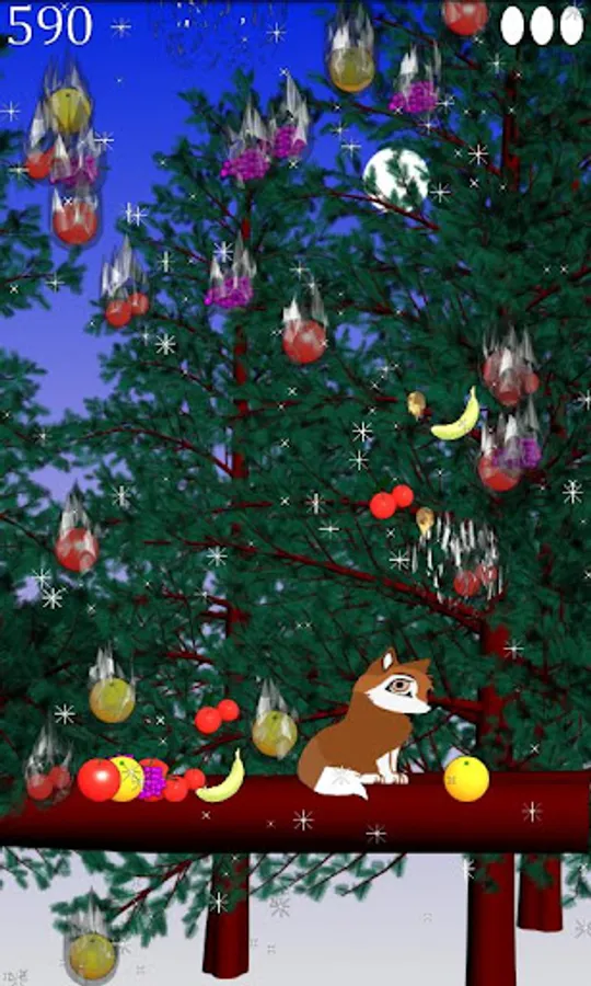 Help the little wolf survive the winter by shooting the ice drops and releasing the fruit for him to pickup. Don't let any fruit get past you or miss the ice drops when firing as this will raise the log. If the log reaches the top, or you are hit by four or more ice drops the game is over.