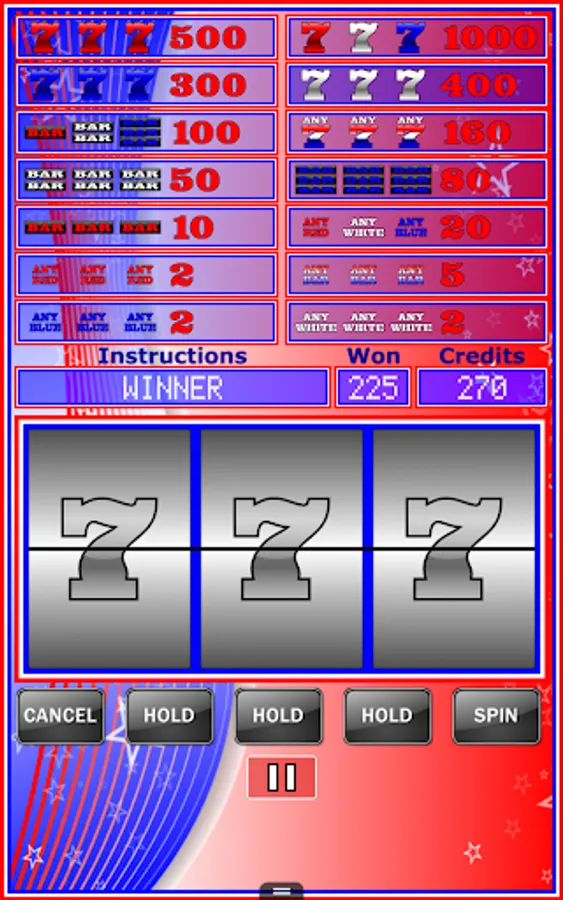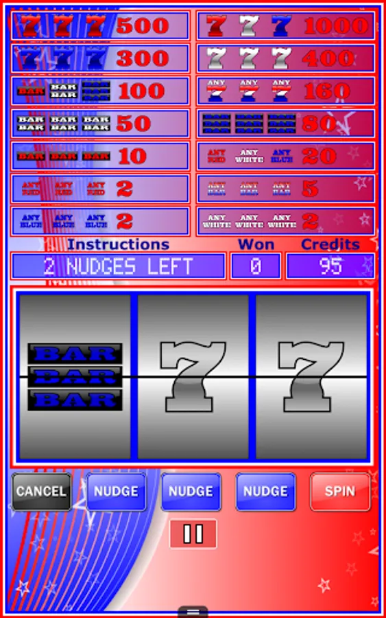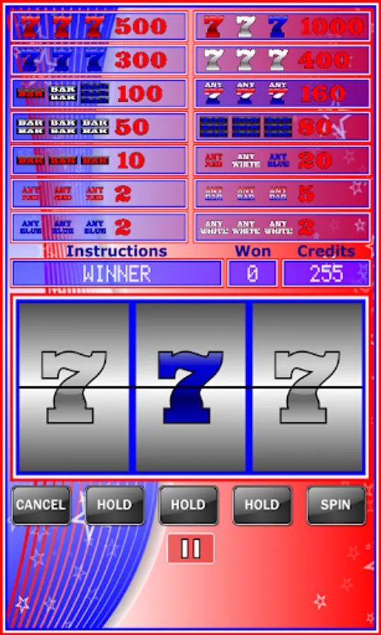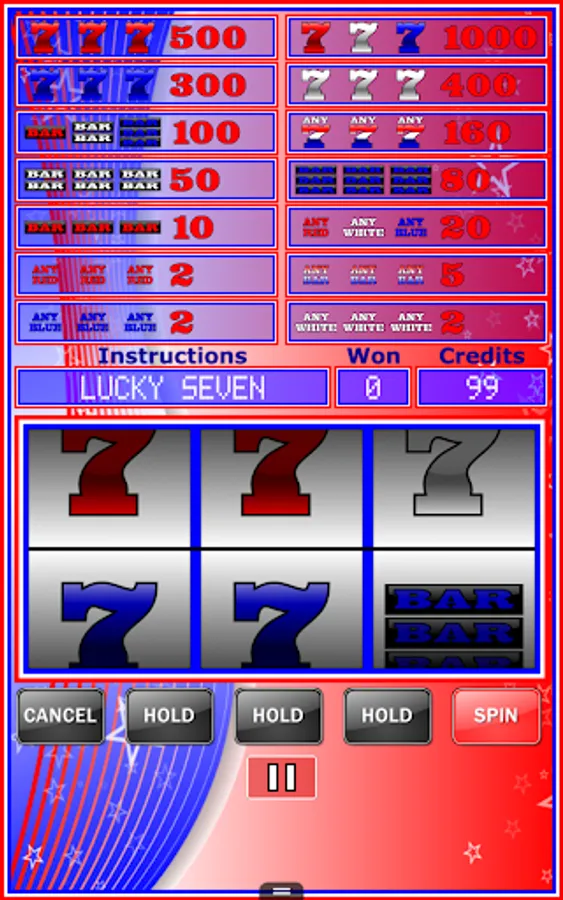 Any three sevens, or any three bars are a winning line, also three red, white or blue symbols will win. Lucky Seven may be the simplest Toftwood Games slot machine, but that doesn't mean it isn't the most fun! Please note Lucky Seven Slot Machine reels can stop between symbols.