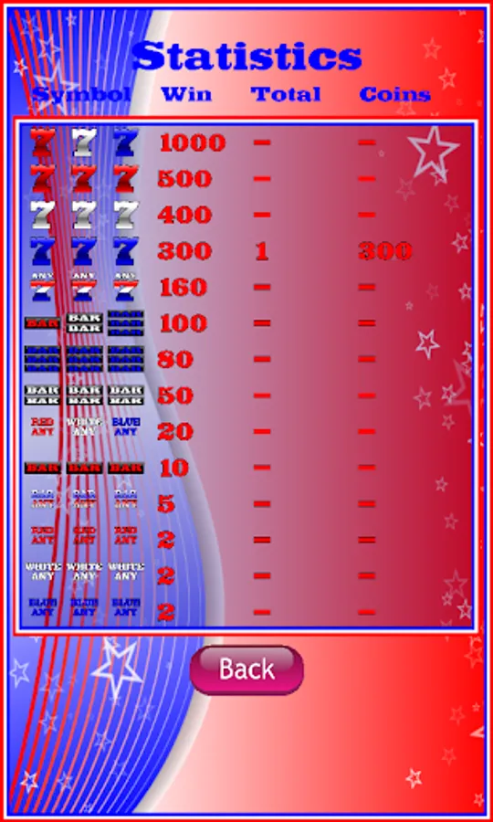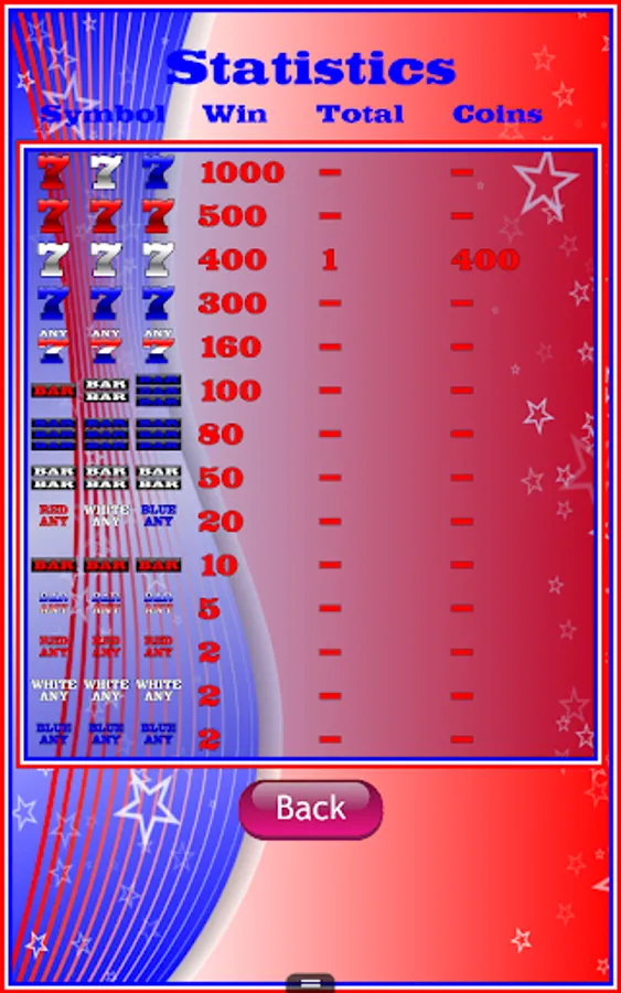 There isn't a great deal to say about this slot machine except press the red spin button and get the sevens and bars on the winning line. One nice thing about this slot machine is that you don't have to match all the symbols to win.
