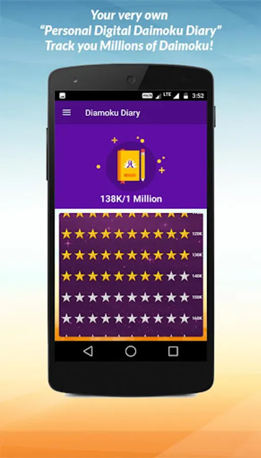 • Select One million Daimoku as your chant time and keep a track of your time via the Goal screen