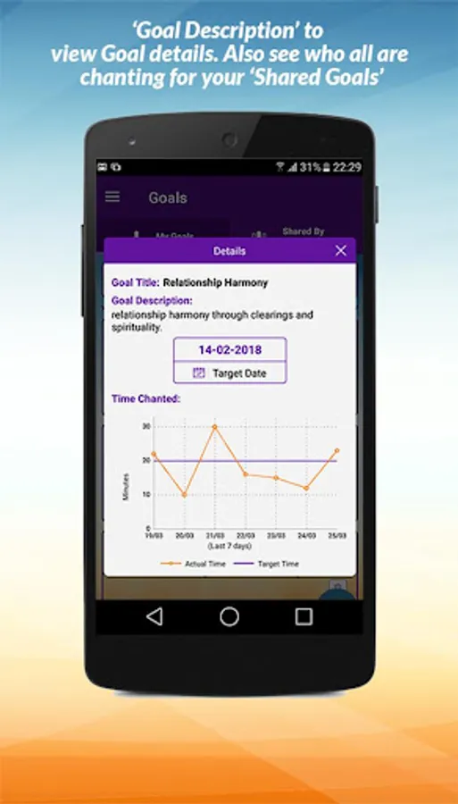• Create your goals and set a Target Date for Goal achievement