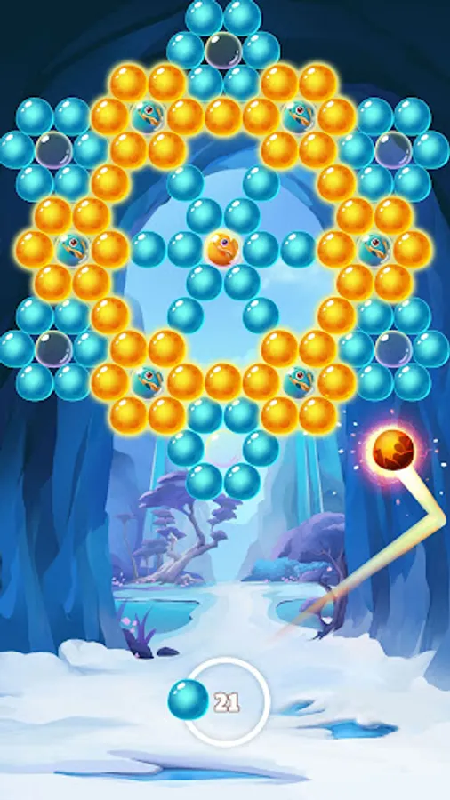 The bubble shooter game has become a popular game in the world since the 1990s. It has an easy way to play, an eye-catching interface, attractive levels, and suitability for many ages. In the bubble game, your goal is clear all the bubbles on the board by aiming and shooting bubbles of different colors to make matches of three or more. Shooting many bubbles in a row will earn many rewards. The bubble game is a perfect combination of classic and modern casual games, along with fun bubble popping sounds that you could play for hours without feeling bored. Just burst all the colorful bubbles on the board and you will win. It becomes even more triumph when you get 3 stars.