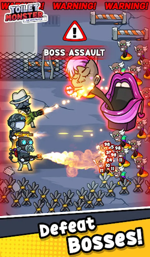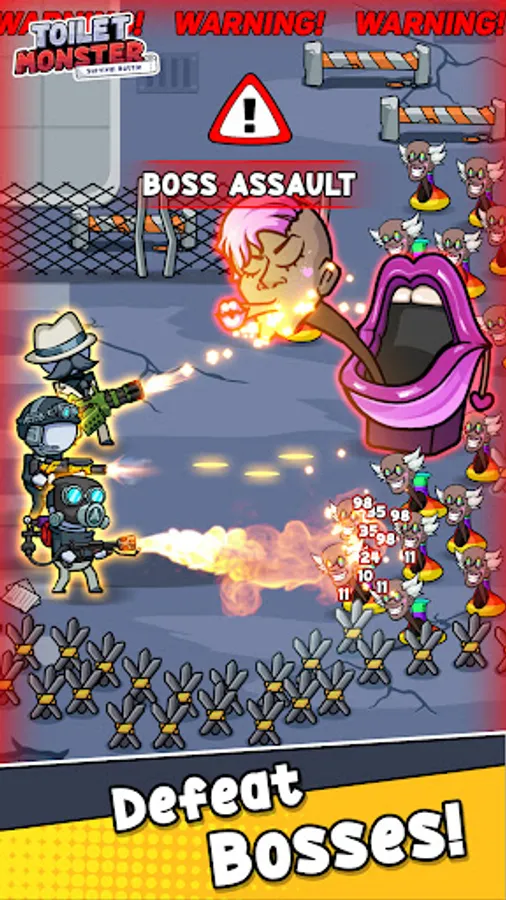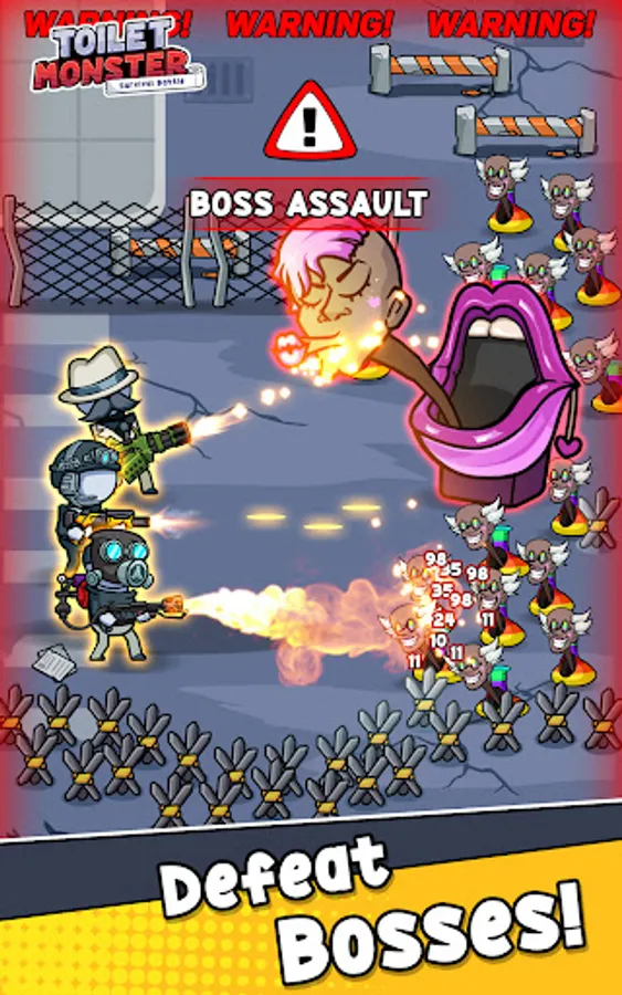 Toilet Monster: Survival Battle 🚽 is an epic combat experience that pushes you to the limits. Engage in boss fights against the menacing Toilet Head Monsters 👹, using your shooting skills and strategic prowess to overcome terrifying toilet attacks. This is not just a defense game; it's a horror fight against the creepy creatures of the Toilet Series.