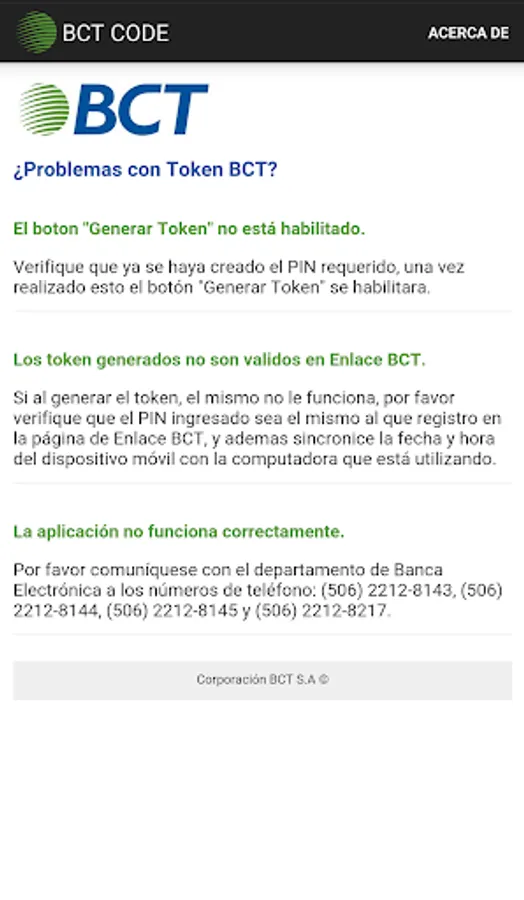 This application allows you to generate a code to be used as a means of authentication BCT Link