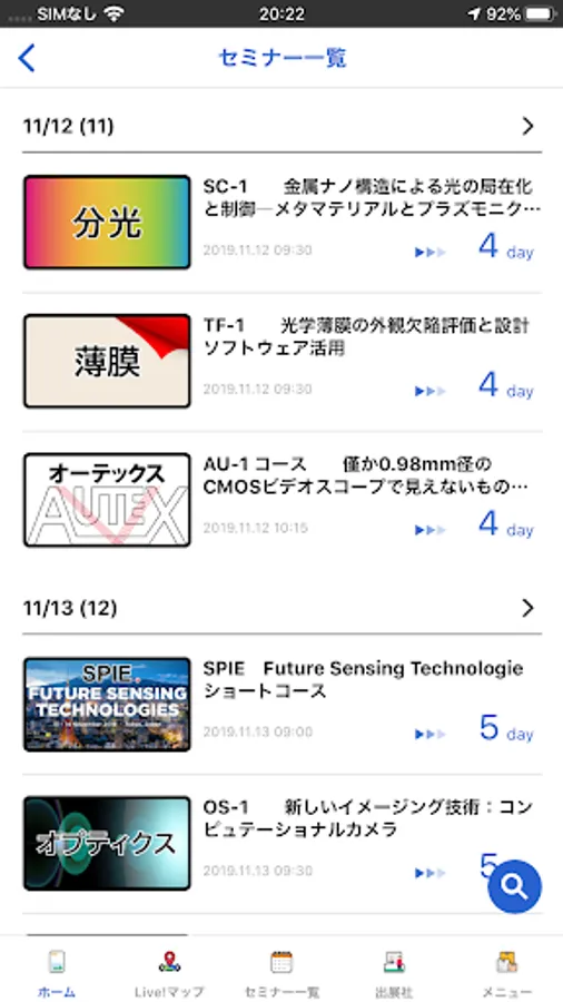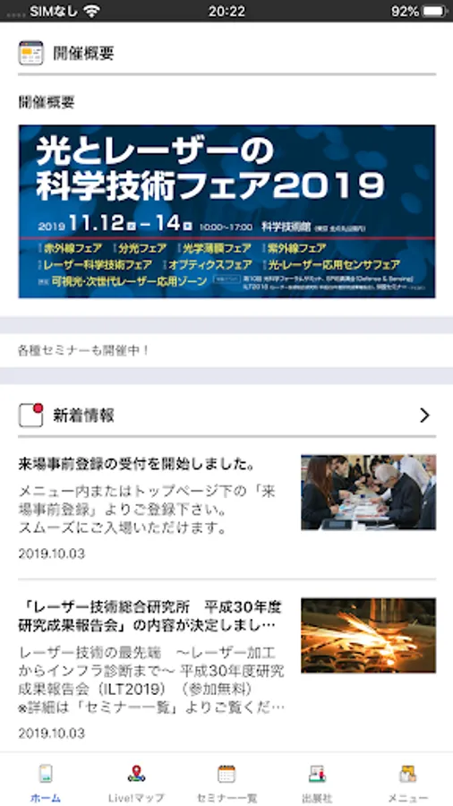 本アプリでは,時期ごとに「OPIE」と「光とレーザーの技術フェア」の両方に対応します。各イベントの新着情報をいち早くチェックすることができるほか,出展社情報やブースのコマ位置,セミナー情報の検索や,展示情報,会場情報など素早く確認することができます。