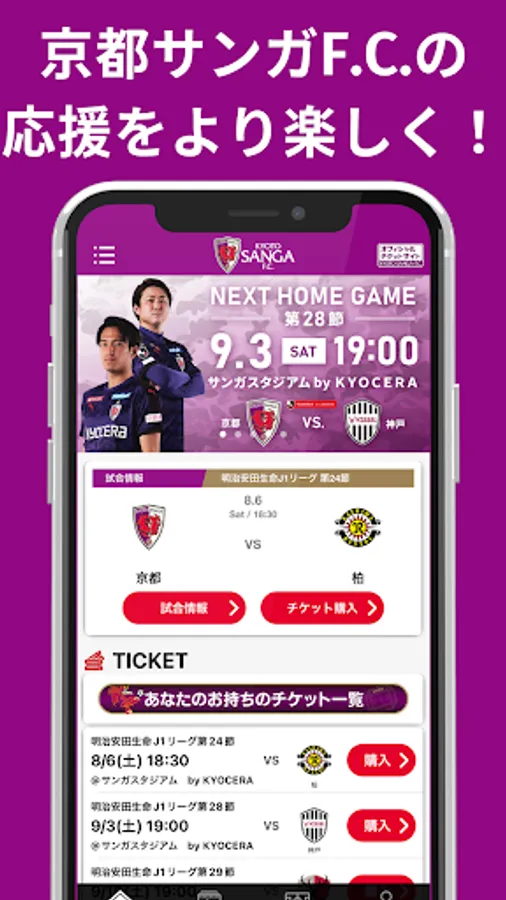 It is an application that you can enjoy both on match day and non-match day of Kyoto Sanga F.C.