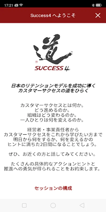 2019年12月3日(火)- 4日(水)にベルサール渋谷ファーストで開催される、日本初かつ最大級のカスタマーサクセスカンファレンス「Success4」の来場者向け公式アプリです。Success4は、デジタル時代が求めるカスタマーセントリックな組織へのシフトを加速させるリーダーのためのカンファレンスです。日本のカスタマーサクセスの未来はここから創られます。