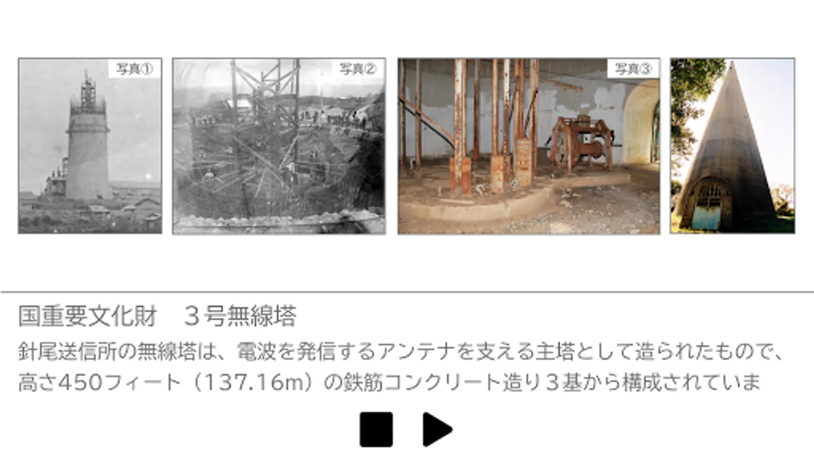 There are 11 guides: (1) general information, (2) office and barracks, (3) tower passage, (3) radio tower, (3) radio tower, (5) guard station, (6) telegraph room, (7) gate guard station, (8) oil depot, (9) truck track, (10) tower passage, (11) radio tower.