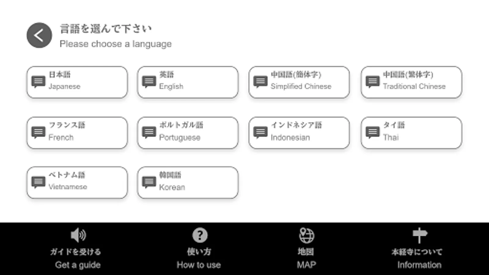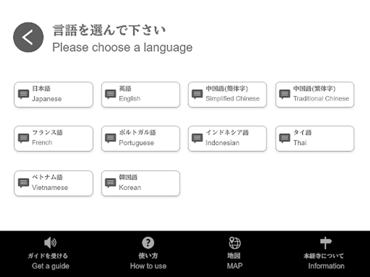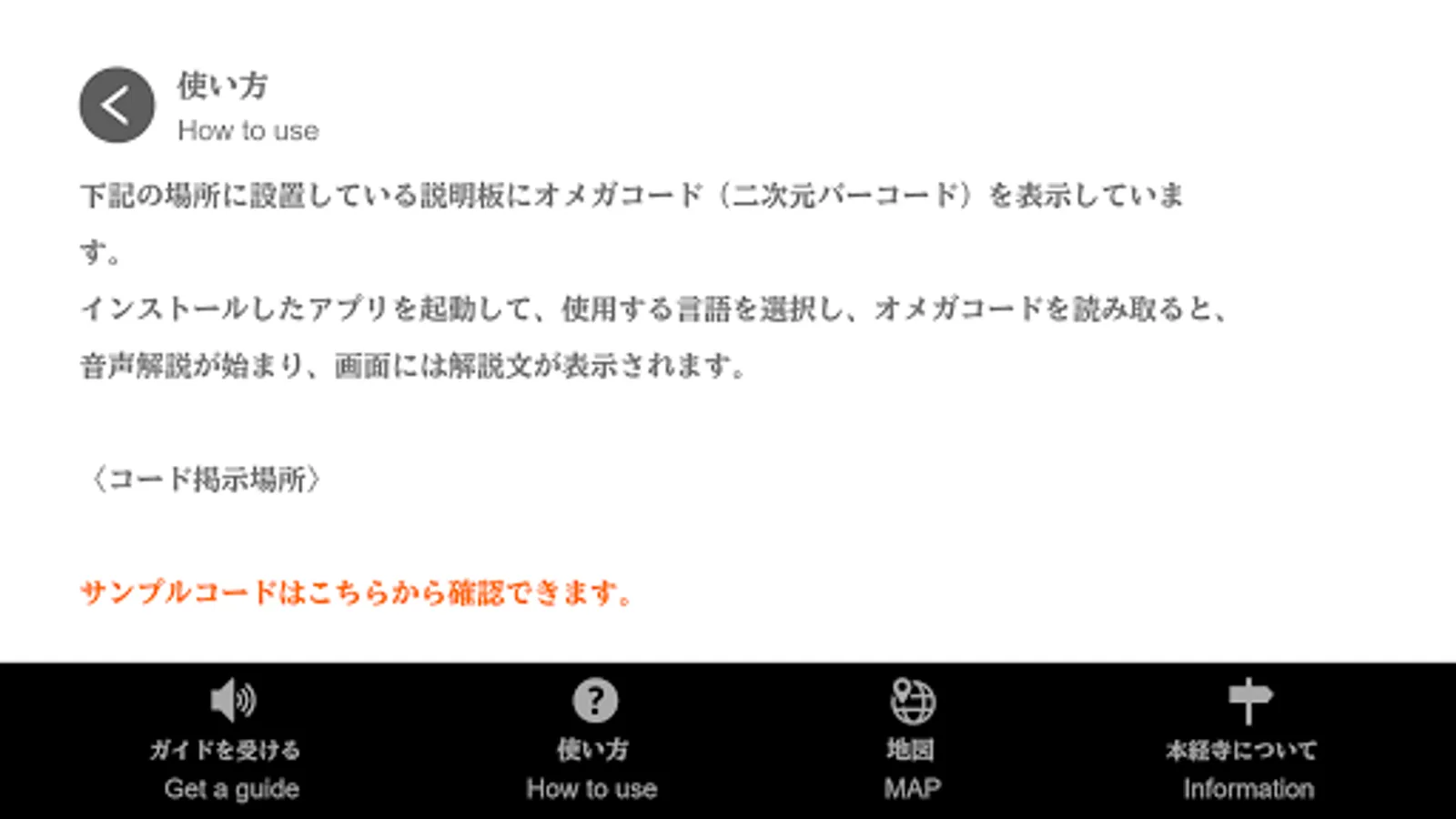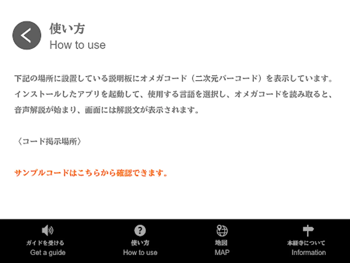 "Omura City Honkyoji Multilingual Guide" uses an omega code, and when you read the dedicated code, it will guide you with voice and telop with images.