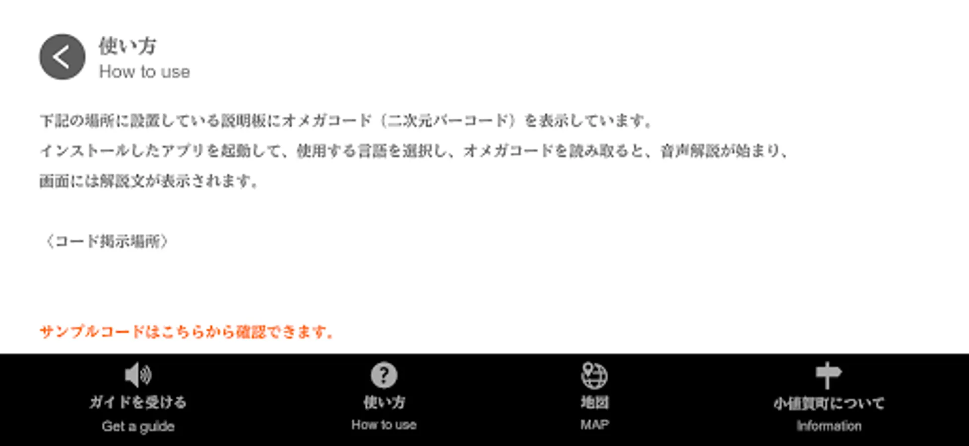 "Ojika Town Nozaki Island Multilingual Guide" uses OmegaCode,