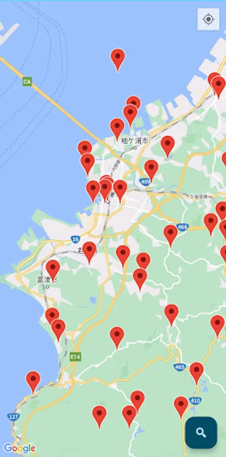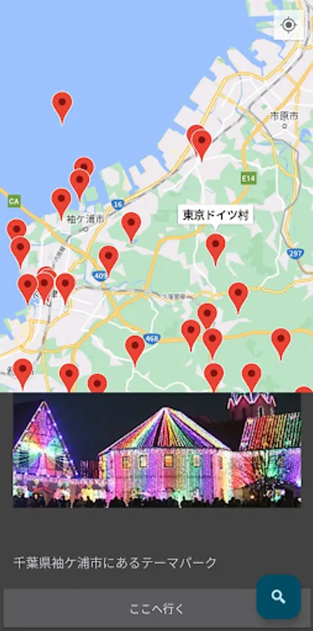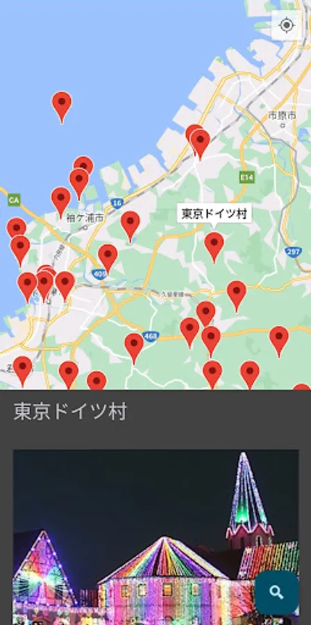 You can search for nearby sightseeing spots from your current location or a specified search range.