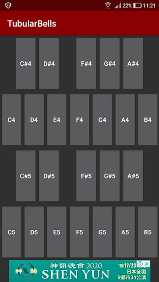 It is an instrument that hangs bells that are found in Christian churches, etc., in a tubular shape and arranged in the same order as the piano keyboard so that they can be easily played on orchestras and concerts.