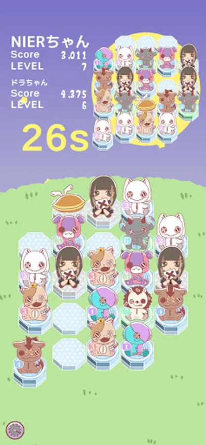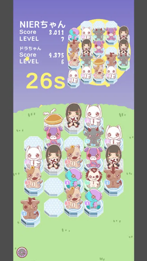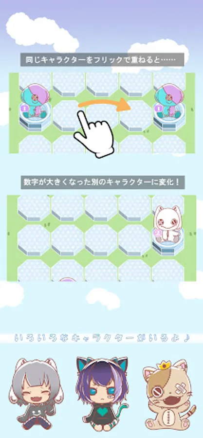 By swiping to overlap characters with the same number, it will change to a character with a larger number.