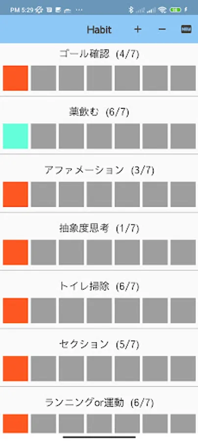 If you no longer need a habit, press the "-" button to delete it on the selection screen.