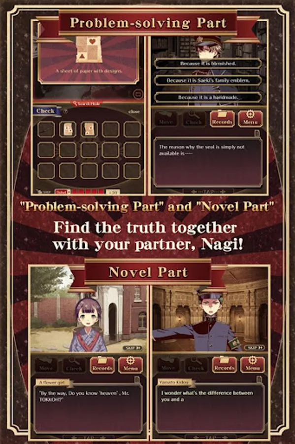 Holding your own sense of justice in mind, solve the mysteries together with your partner!