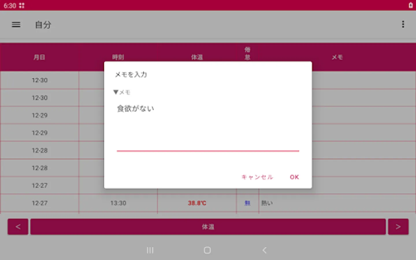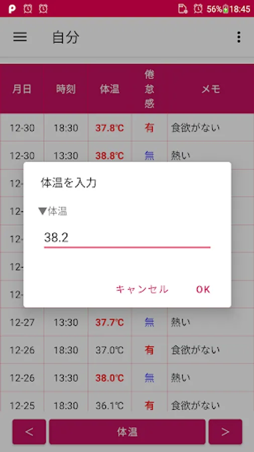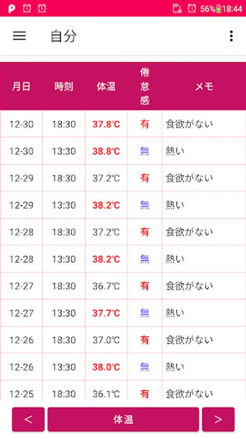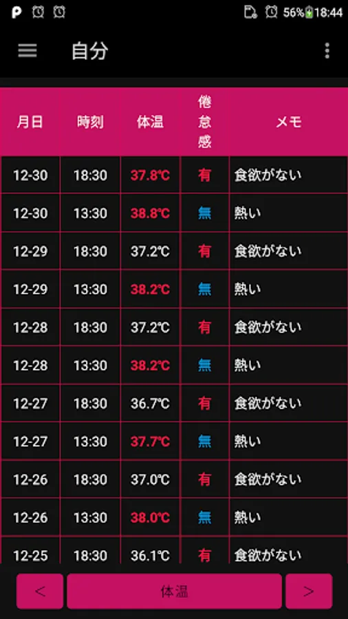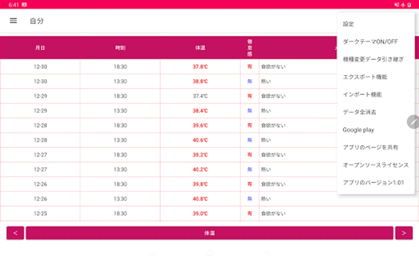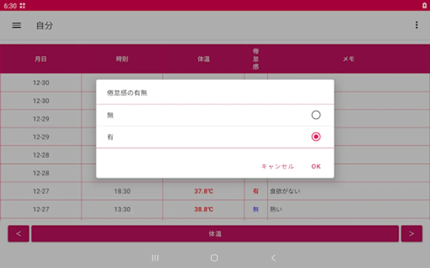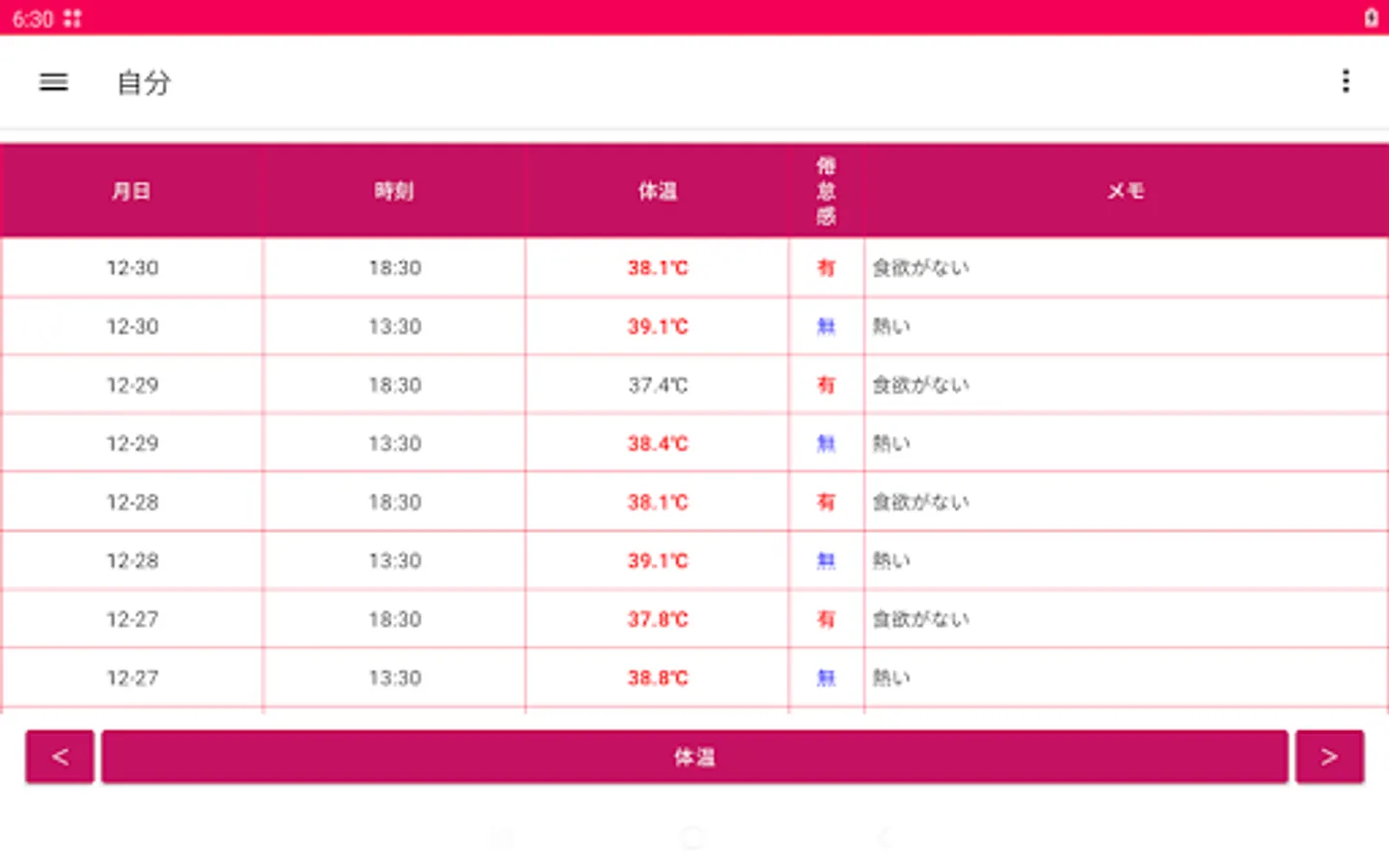It is an application for managing fever. Records body temperature and malaise and displays a table.