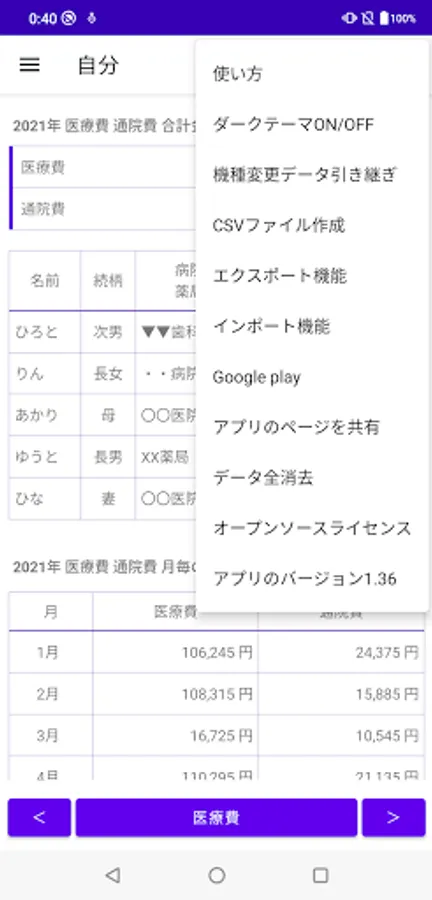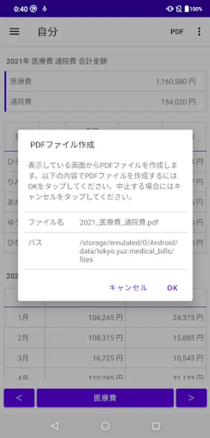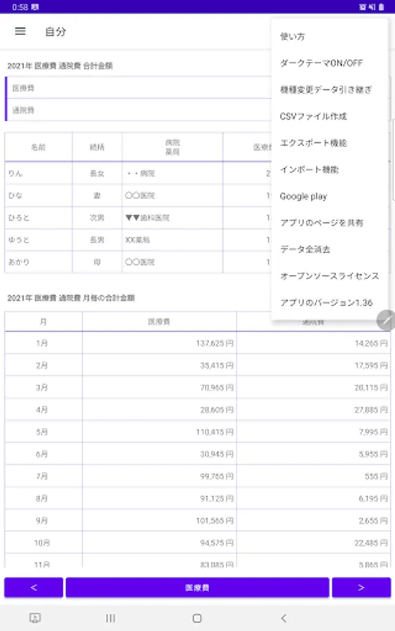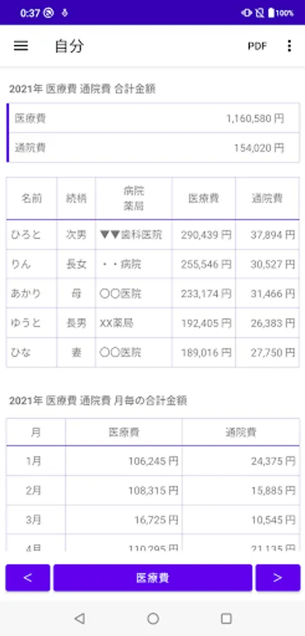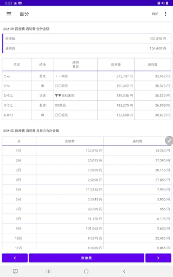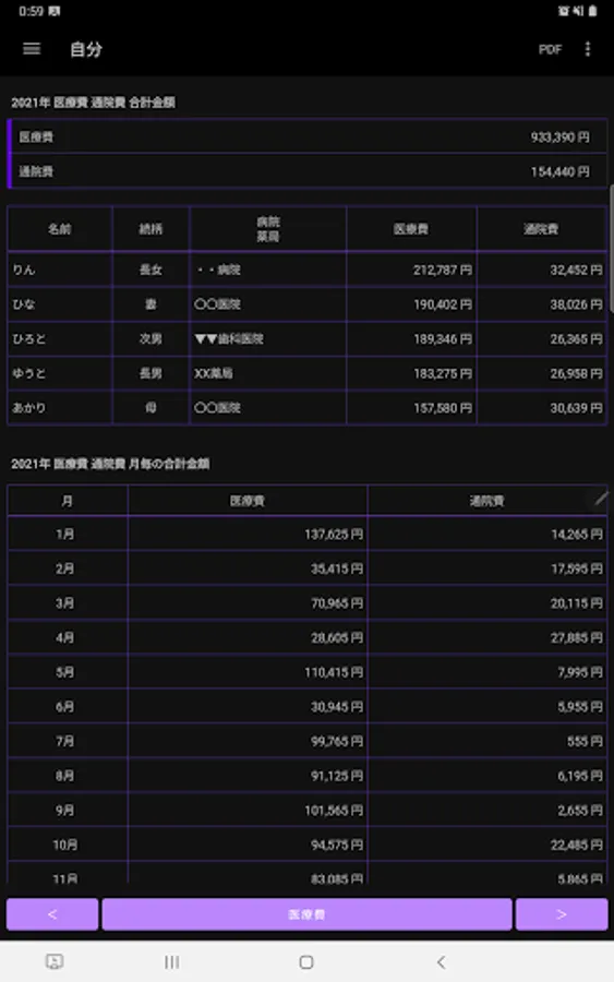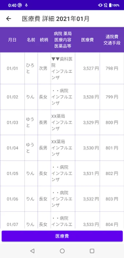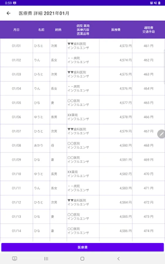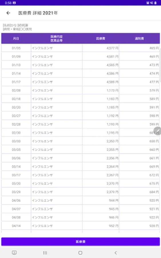 ・ When you press the "Medical Expenses" button at the bottom of the medical expenses details screen