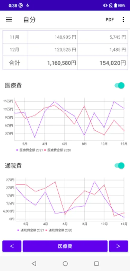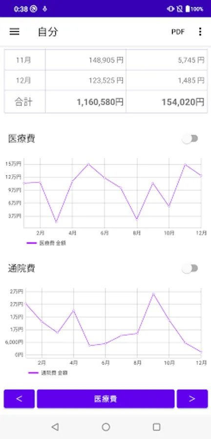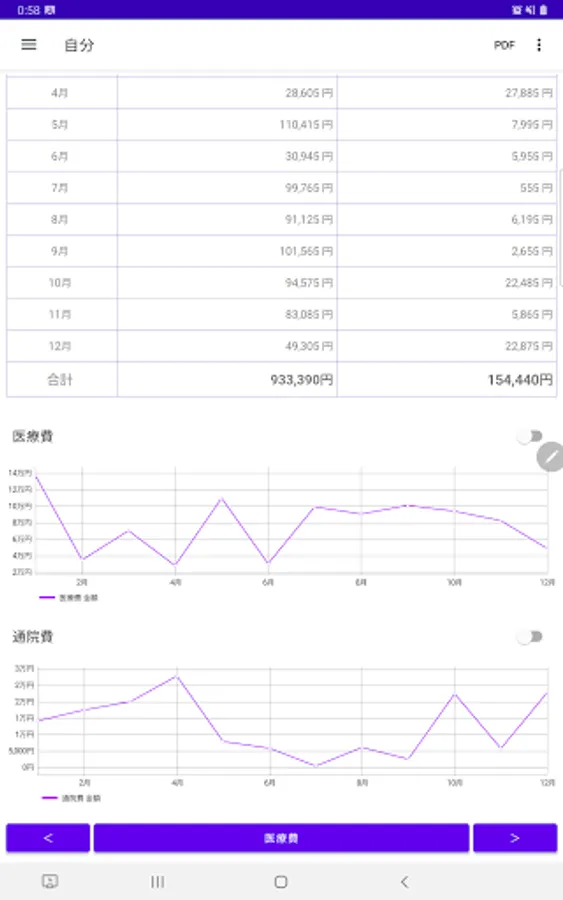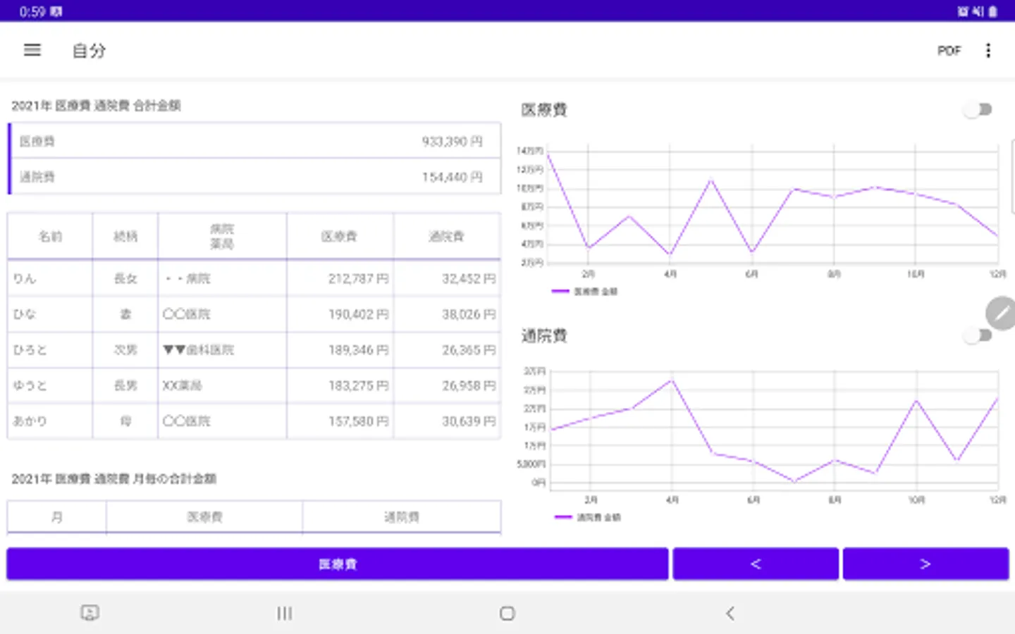 By checking the line graph and bar graph of the monthly medical expenses, you can understand how much medical expenses and outpatient expenses were incurred in which month.