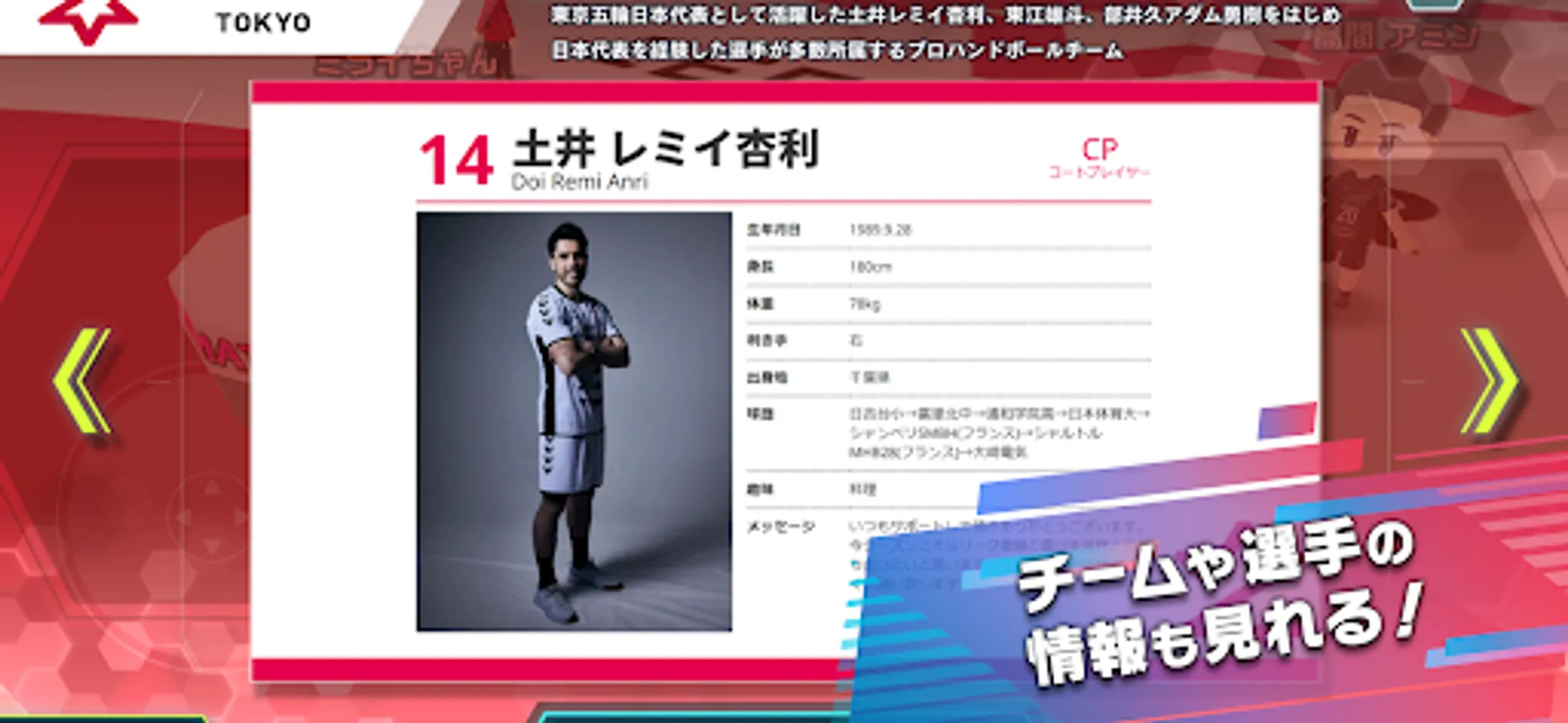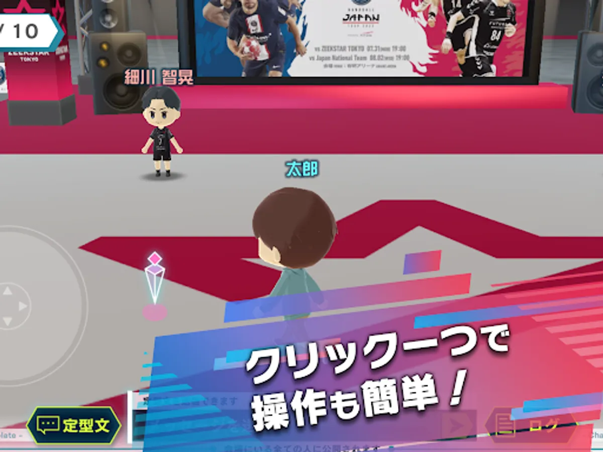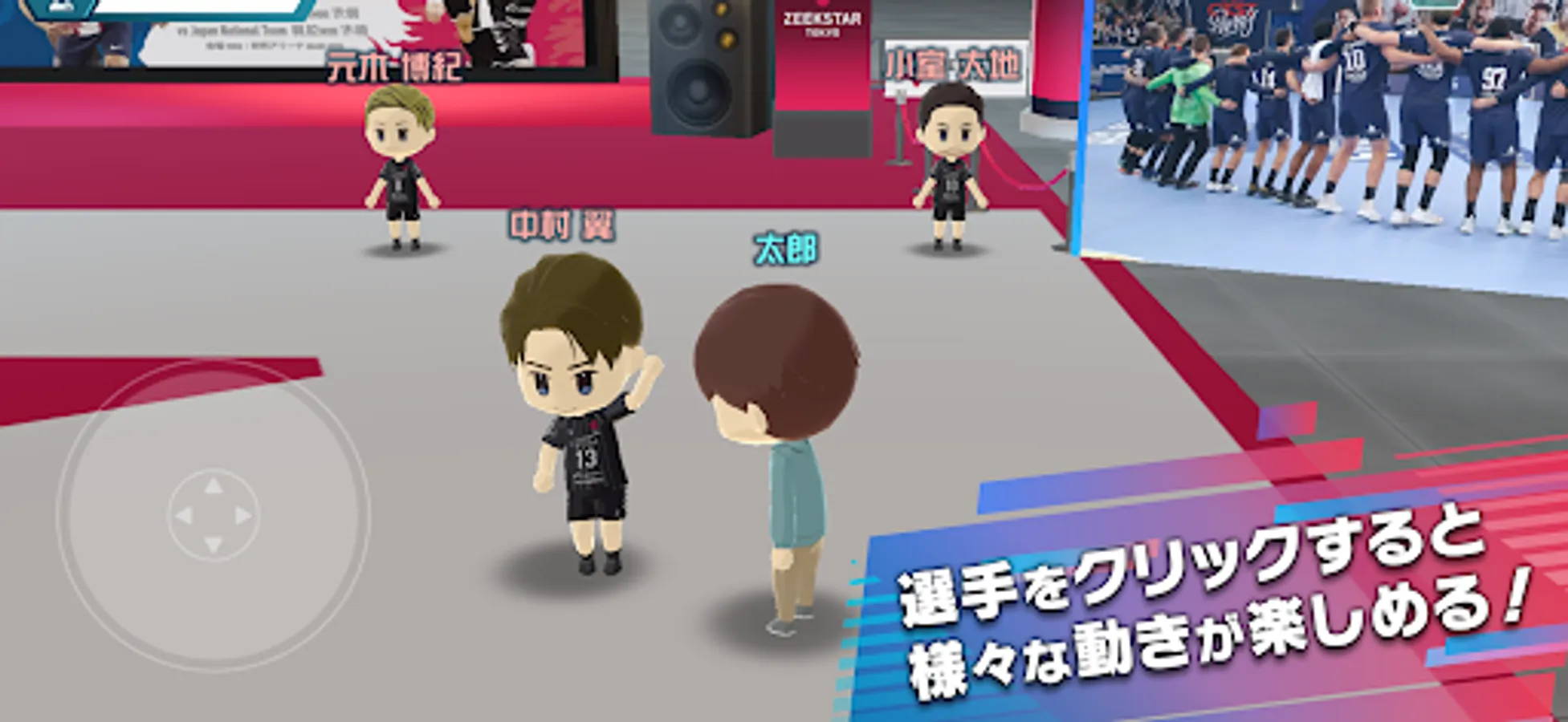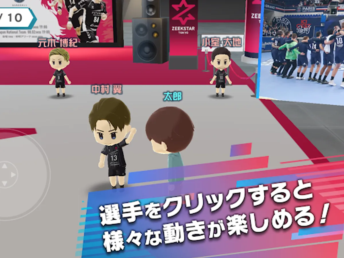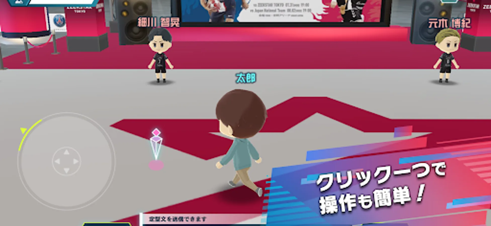 In the arena, you can operate your own avatar, move 3D modeled players, and view team and player information.
