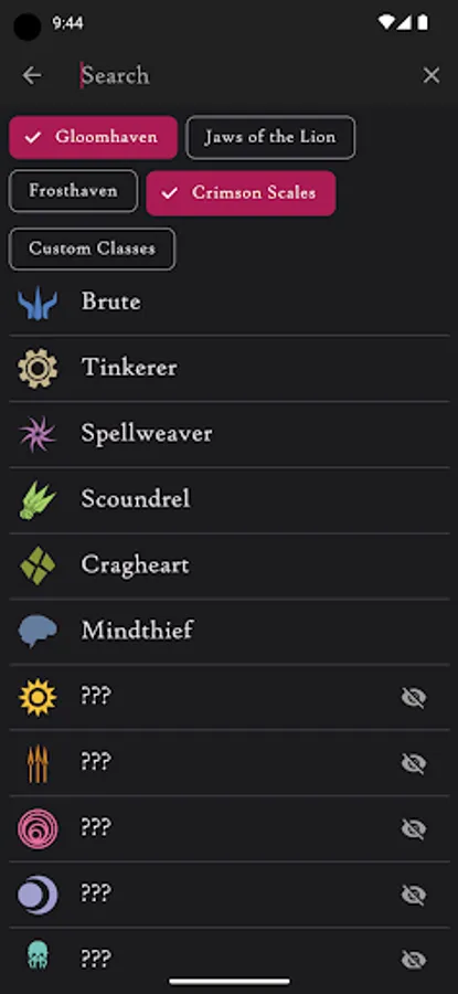 Includes support for 'Gloomhaven', 'Forgotten Circles', Jaws of the Lion', 'Frosthaven', and 'Crimson Scales' with 'Trail of Ashes'