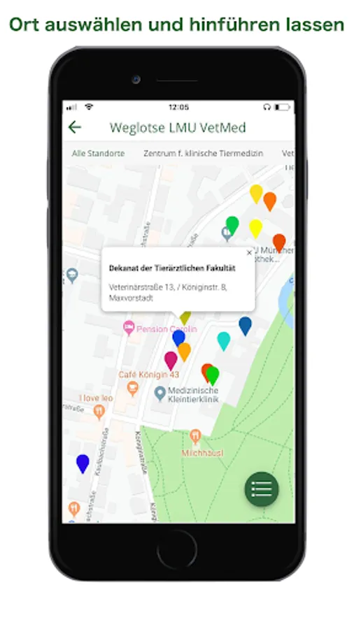 The app is a great support in their everyday study life, especially for students. It enables quick access to timetables, the various regulations and the Skills Lab. The Weglotse, together with the LMU Roomfinder, enables uncomplicated navigation to the different institutes.