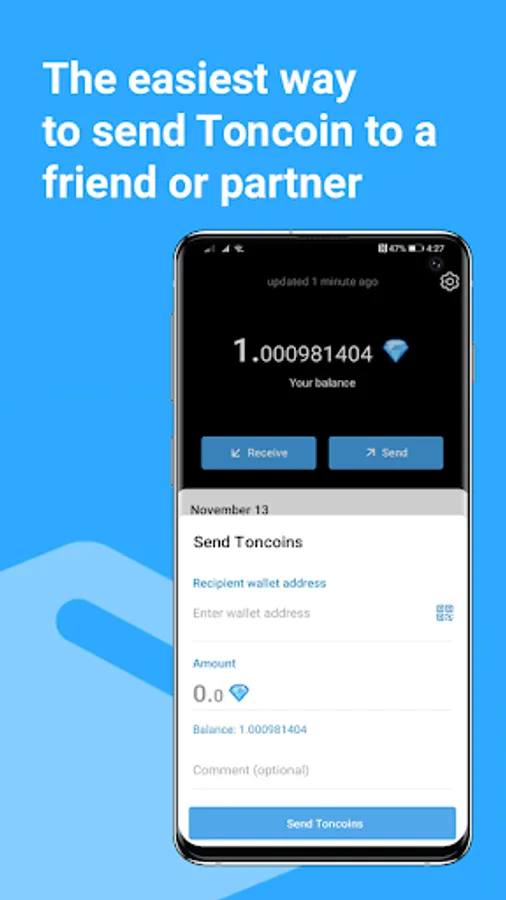 Secure and private: Send, receive or store Toncoin on the TON blockchain.
