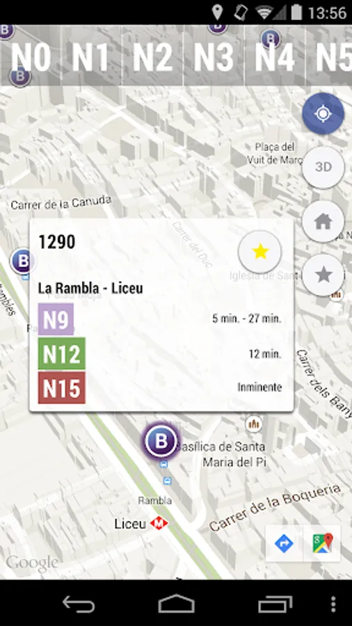 - Map with all stops Nitbus Barcelona. Clicking on a stop bus information passing through it and the arrival time is obtained.