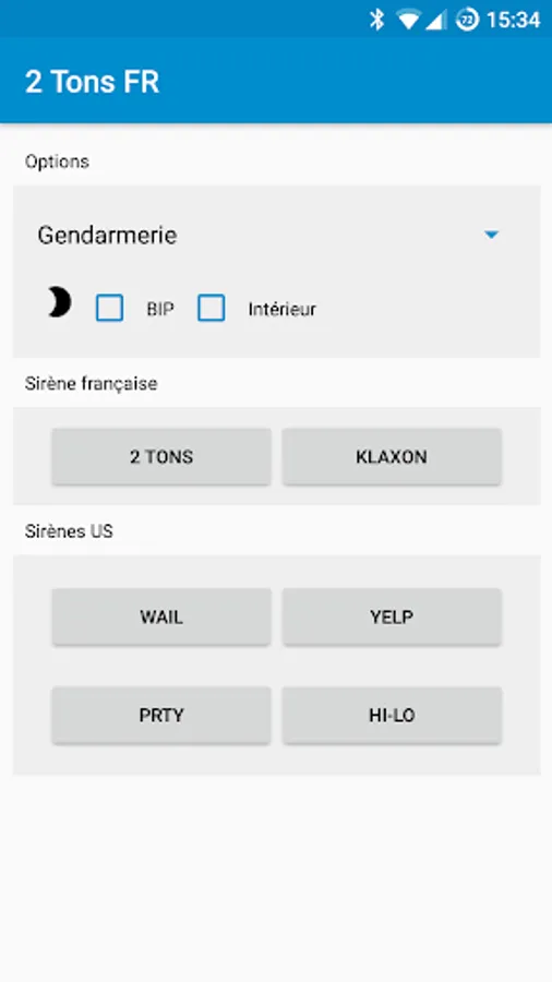 This application simulates the audible warning devices (siren) of French two-tone and three-tone priority vehicles (3-tone private ambulance, gendarmerie, police, firefighter, SAMU), but also American vehicles with wail, yelp, prty or even hi-lo .