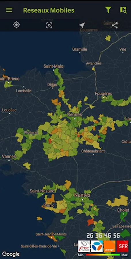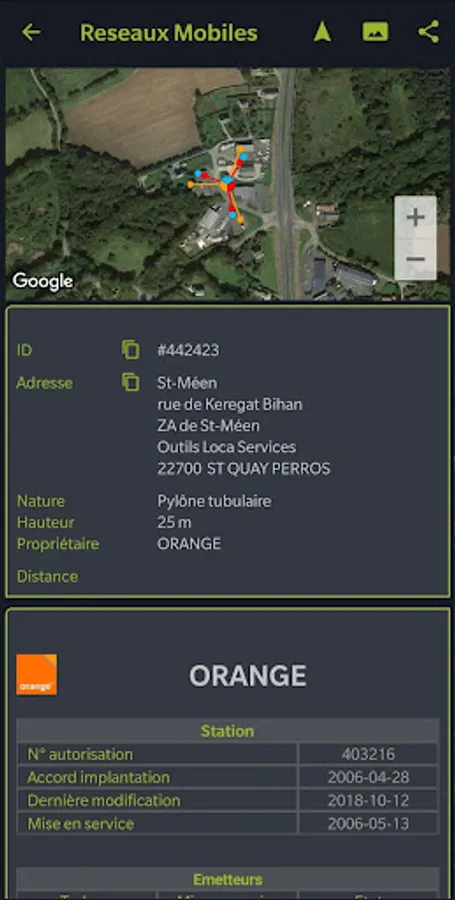 The application 'Mobile Networks' allows to know the position and characteristics of antennas of the leading mobile network operators in France (Orange, SFR, Bouygues Telecom and Free Mobile).