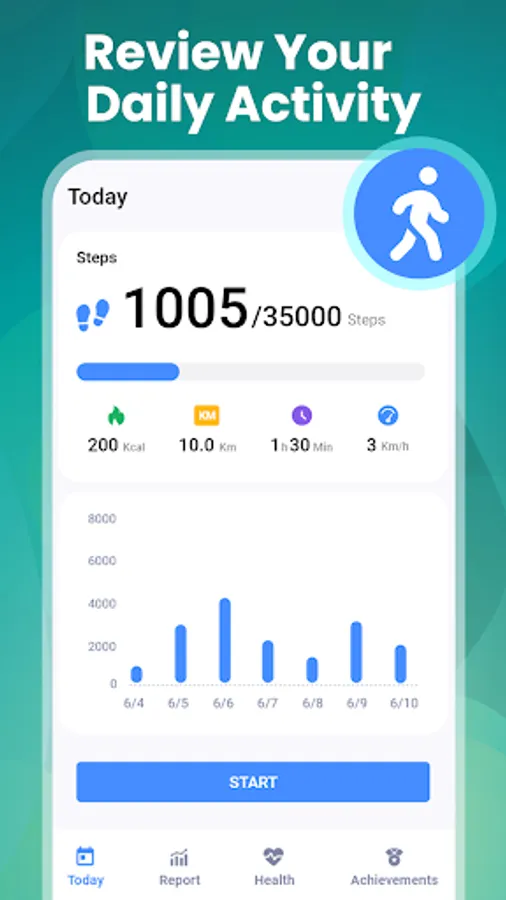 Step Counter - Pedometer is the most accurate & simple Step Tracker to help you stay healthy with Step Counter, Calorie Counter and health reporter. Pedometer & Step tracker auto record your daily steps, burned calories, walking distance, duration, pace, health data, etc., and display them in intuitive graphs for easy checking. This Pedometer & Health tracker is designed to improve your health and fitness.