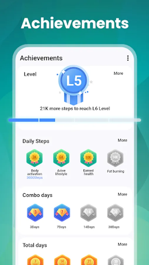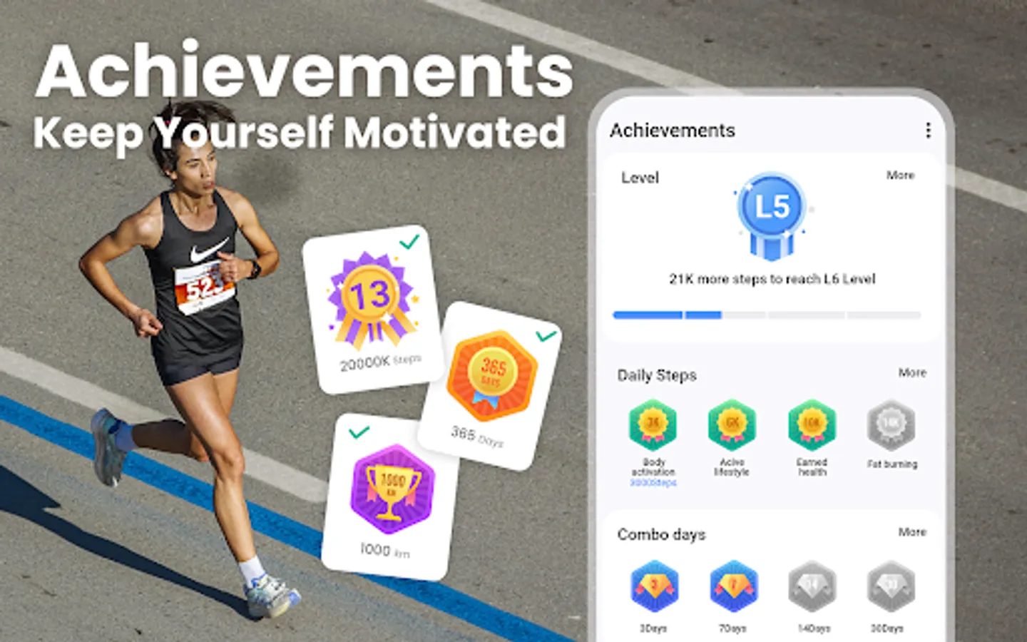 Consecutively achieve your goal for day by day. You can easily check your streak statistics chart to stay motivated with Step Counter.