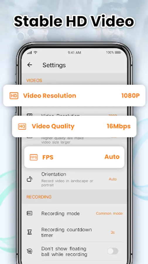 * Frameless high-quality video(1080p, 16Mbps, 60fps) while recording or capturing screen