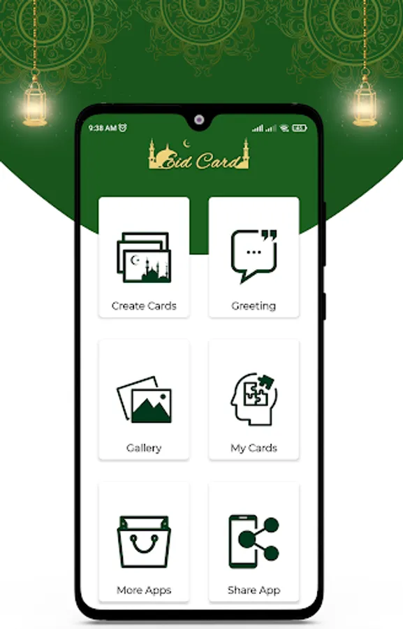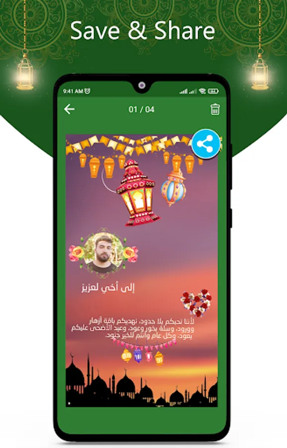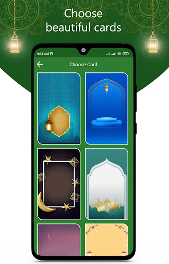 Muslim Card app includes beautiful and quality greeting cards to share with your loved ones Muslim Card app provides you to design your cards, there are so many background cards in Eid Card app and you can select any one and write your greeting message, select pre define greeting messages, you can change its font, color, size.