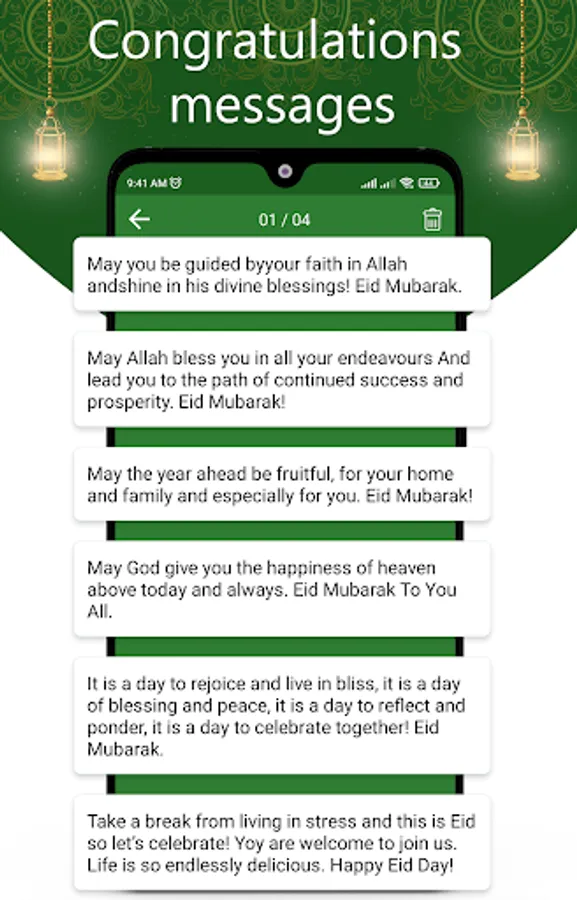 You can congratulate or send greetings by text or by cards. Muslim Card app provides both options, this app includes beautiful and attractive greeting cards for you to celebrate your eid with your loved ones.