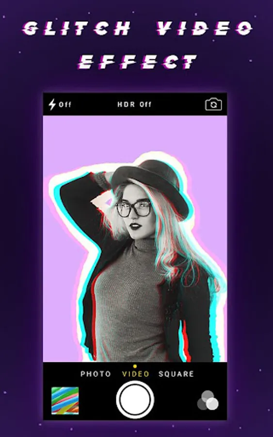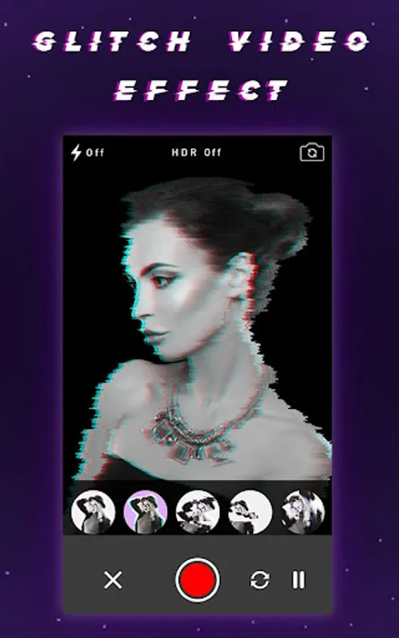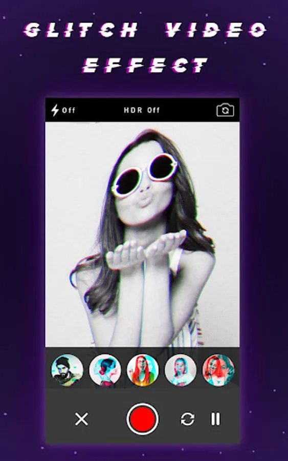 Glitch Video effect, you can easily distort video in too artistic way. for distorting video Just a tap and choose one from multi Real-time glitch effects and hold to apply it in video recording.