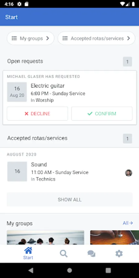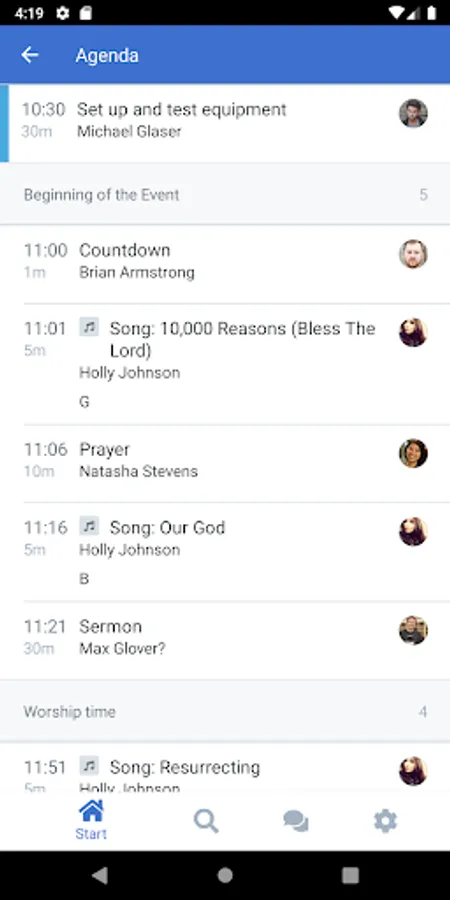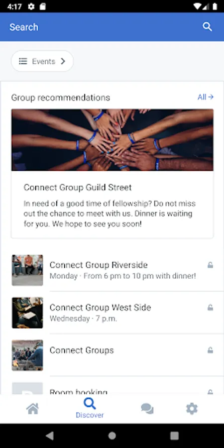 For example, if you are leading a church service or event, or simply volunteering, you can easily read the agenda of the event by using the app. Furthermore, you can see with whom you are assigned to a for an event or service. At the tab Discover you will find more future events.