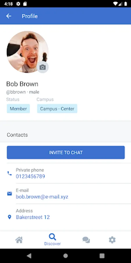 With the search in Discover you can find people and contact them directly. It also displays additional information such as relationships and tags. And for sure, you can upload a nice new picture for your own profile.