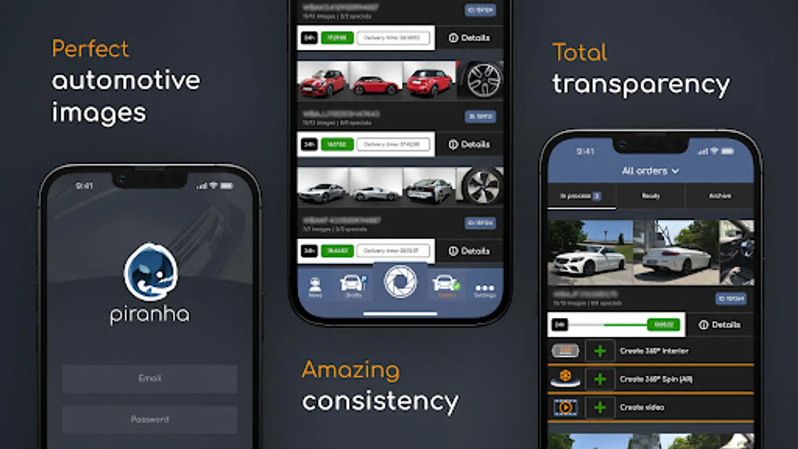 With the Piranha app, we offer commercial car dealers an intuitive solution for automotive photography. In addition to creating professional and consistent images according to manufacturer specifications, you will also be able to take 360° exterior shots and interior panoramas using a 360° camera. We can provide manual image cropping as well as cropping using our artificial intelligence. We can deliver the results directly to your DMS and they will also available for download in your Piranha web access. Last but not least, you can also create videos with predefined setup and guides. Use the Piranha app to showcase your vehicles perfectly and boost your sales.