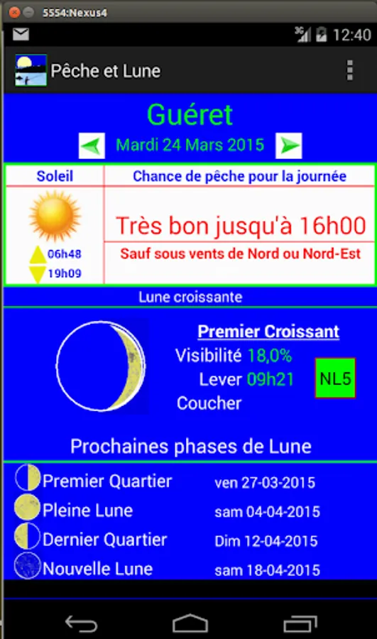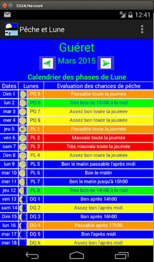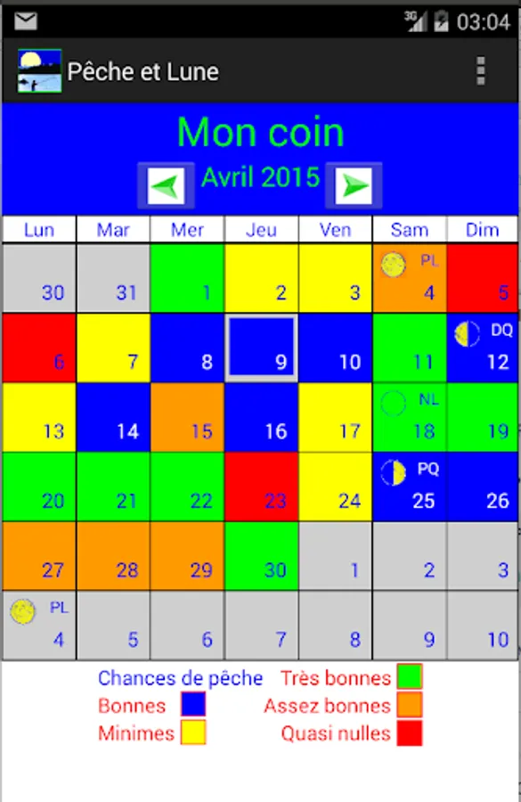 ʺPeche et Luneʺ gives access to information on a particular date or on a full month.