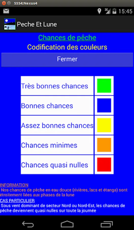 These chances (very good, good, fairly good, fair or bad) with identification of the period of the day, are linked to the influences of the Moon.