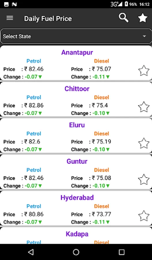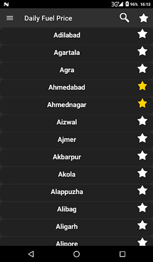 Mark Your favorite cities and towns and villages to get the instant update and quick check on thee petrol and diesel in your area.