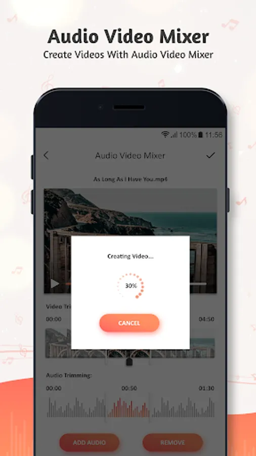 Audio video mixer. Video editor app, using this app you can add or mix your favorite audio files to video files.