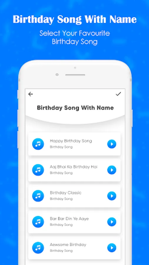 Birthday song with name. We are providing most special module which is "birthday song with name". In birthday song you can enjoy with a list of "Hindi birthday song", "English birthday song", "instrumental birthday music". we provide main features which create special "birthday wishes song", In that you can choose the song and the speak name of your birthday person's name.