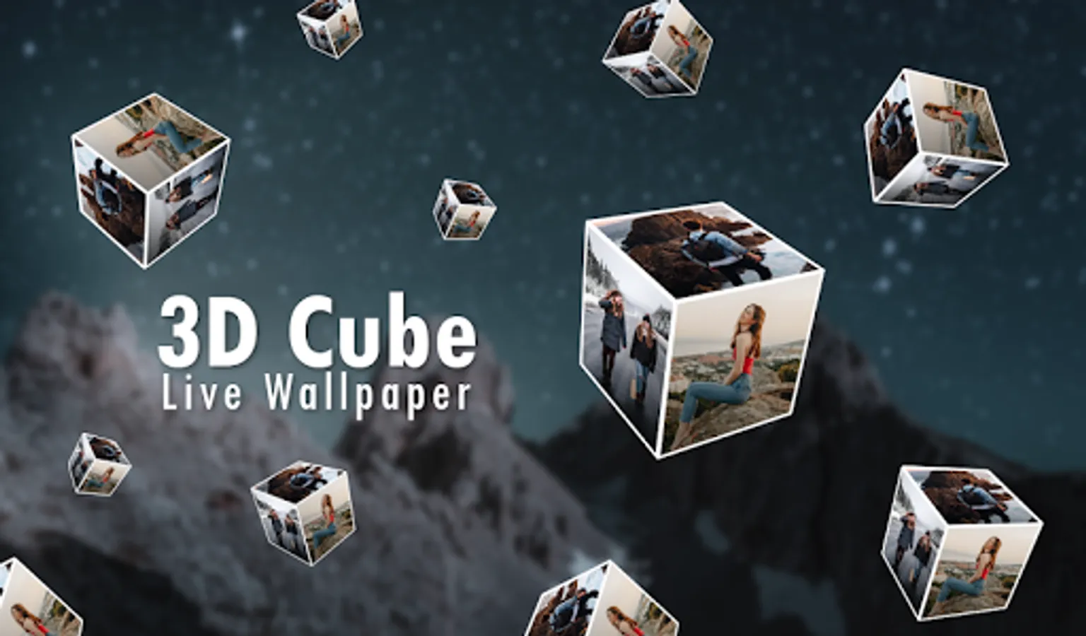3D cube live wallpaper. Cube live wallpaper provides the different 3D cube live wallpaper. 3D photo frame cube live wallpaper has six side and each side you set different photos from gallery.