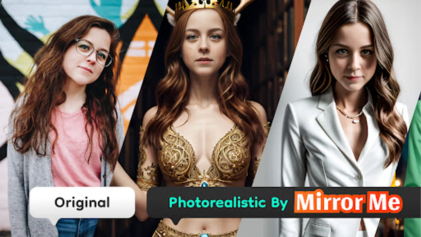 Mirror Me App is a ai App: Create beautiful AI photos without using a camera, Generate photorealistic images of people by Mirror Me.