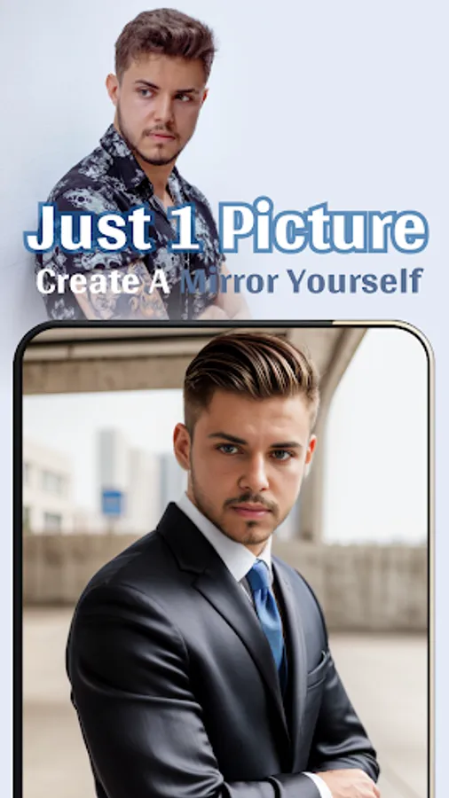 You can generate various poses with high-quality and realistic photos using AI by just uploading a single photo, without the need to upload dozens of photos like other AI apps. Mirror Me App is very simple to use and utilizes advanced AI technology to generate completely new photos based on the uploaded photo.