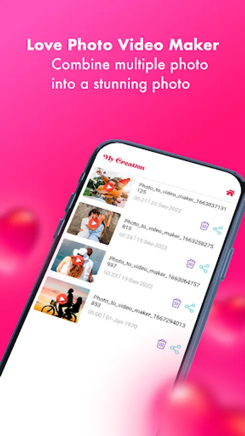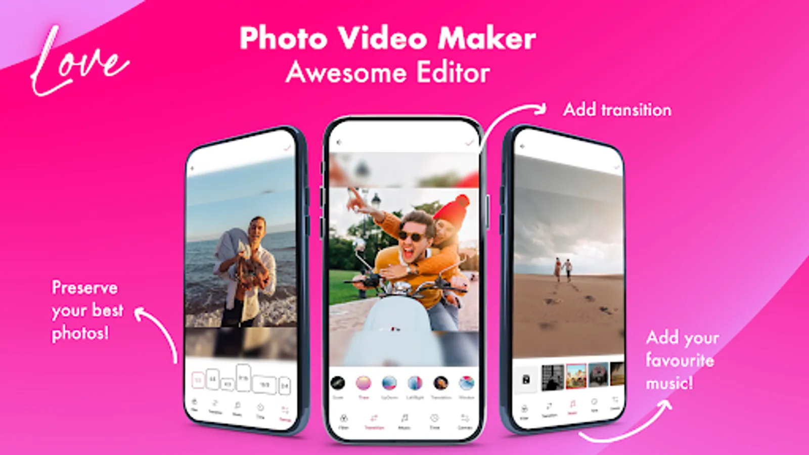 Love Photo Video Movie Maker is amazing app to create video from photos and music. Create photo slideshow from any number of photos with any length of movies.