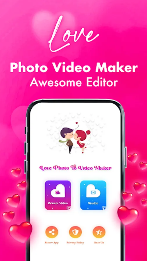 All Things will be simple and quickly with Love Video Maker. Love Video Maker will help you collage many pictures, photos and whatever music you like become short love video with many love frames, effect love video.